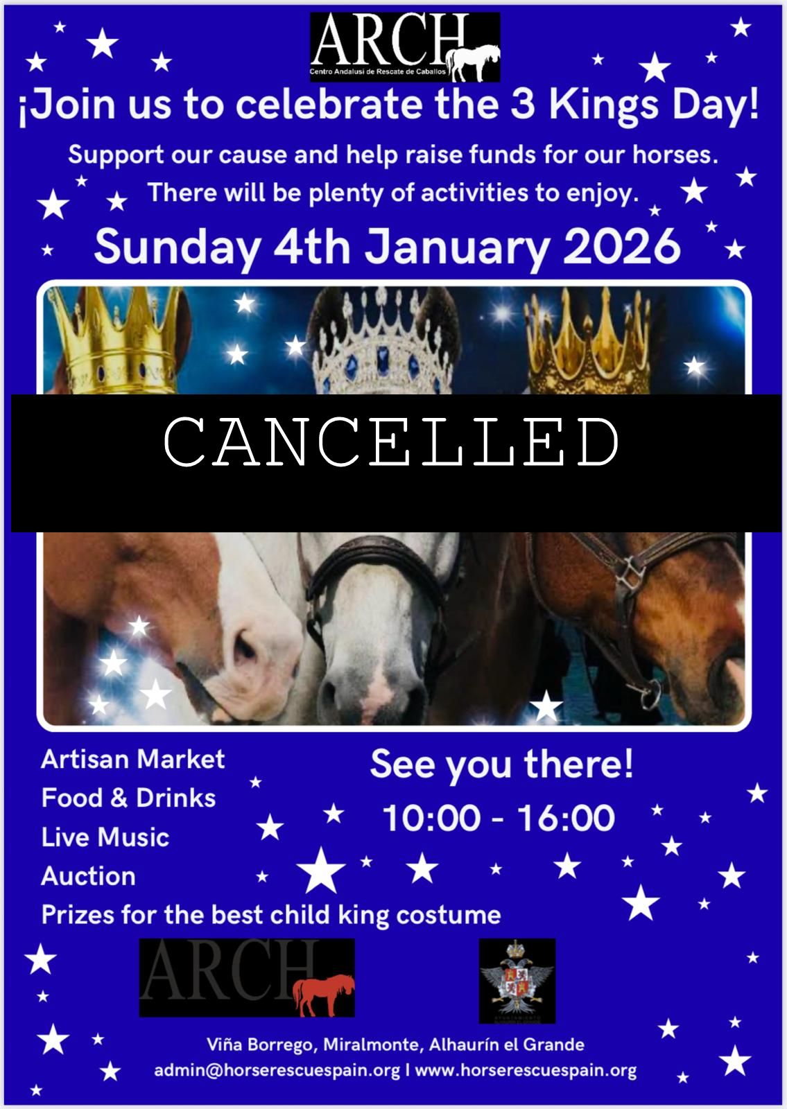 We have made the decision to cancel our Open Day and the Three Kings Fest event on Sunday, 4 January as a mark of respect for the recent loss of life in Alhaurín el Grande. We offer our most sincere condolences.