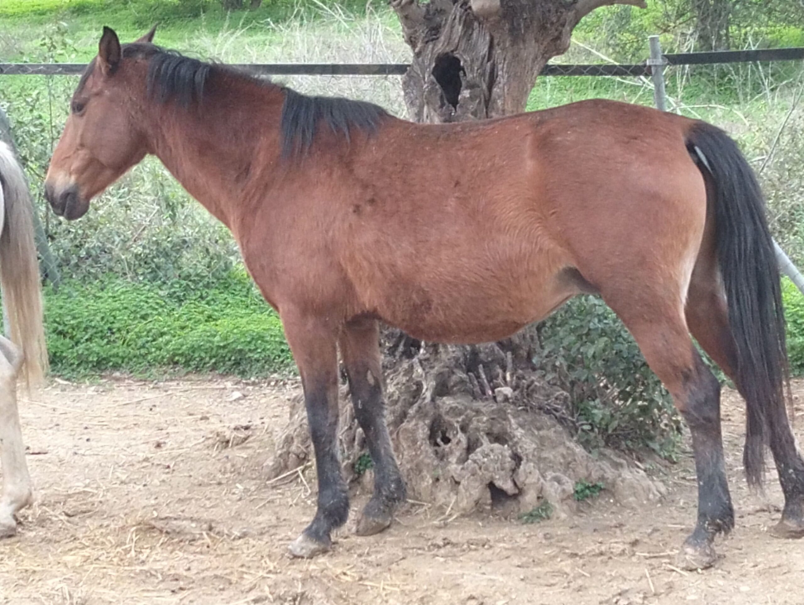This pretty mare is a wild horse from the Doñana area. She and 6 other horses were caught by the police because the group had gotten onto the streets, endangering traffic.